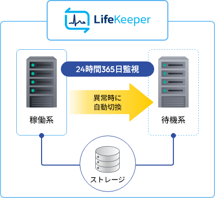 LifeKeeper(ライフキーパー)はシステムを監視し、障害発生時に自動で待機系に切り替えシステムのダウンタイムを短縮、ビジネス損失を最小限にするHAクラスターソフトウェアです。