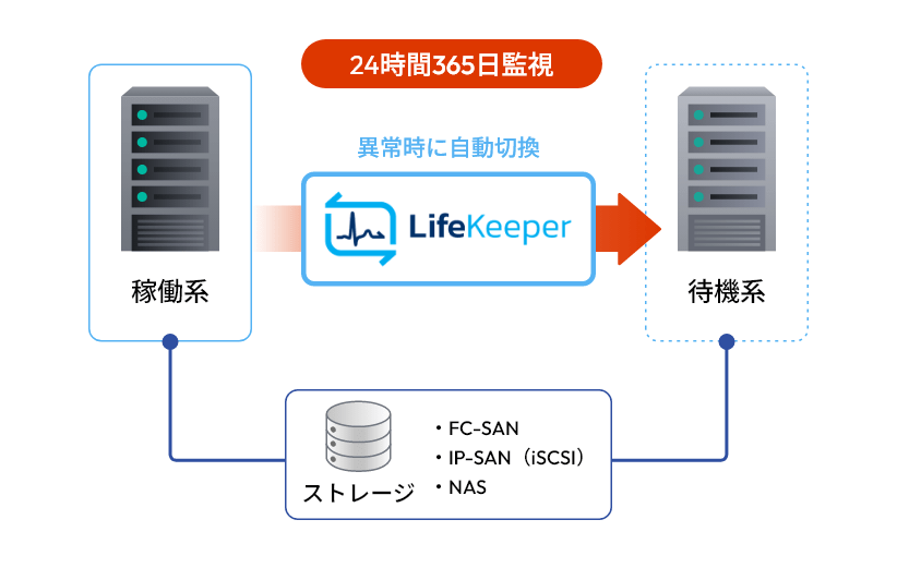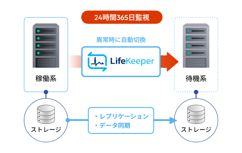 LifeKeeperは、システム障害や災害から業務を守るHAクラスタソフトウェア。多彩な構成・幅広い環境で、企業のビジネス継続を支えます。