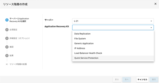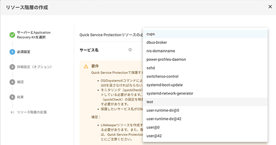 Quick Service Protection機能の使用により、GUI上での簡単な設定のみでLinux/Windows上の一般的なサービスをLifeKeeperの保護対象とすることが可能です。(※注1)