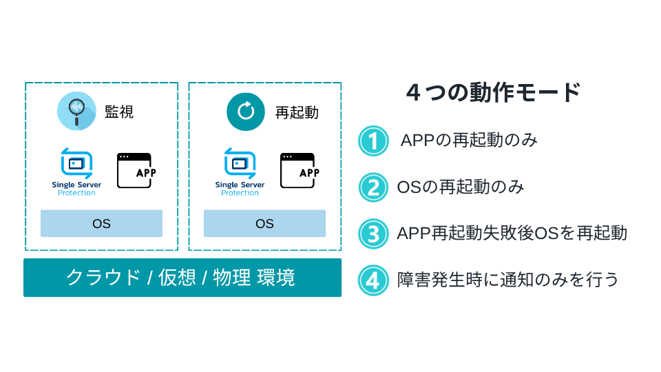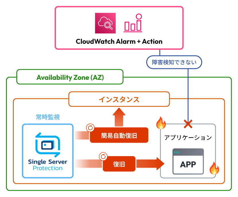 Single Server Protectionにより、アプリケーションの障害も検知し、再起動で自動復旧を試みます。