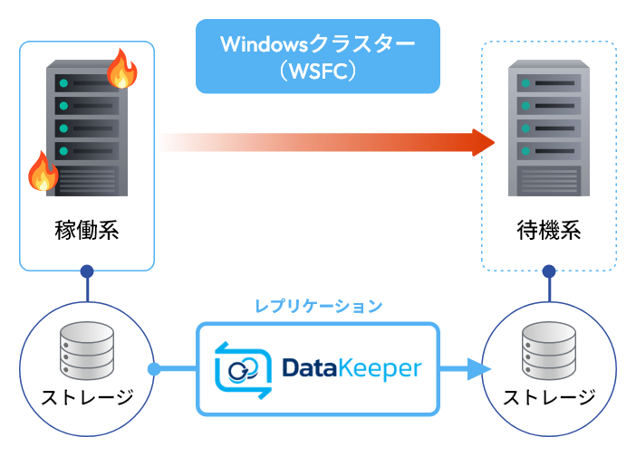 データレプリケーションソフト『DataKeeper』と合わせて利用することで、論理的な共有ディスクを作り出し、オンプレミスと同様にWSFCを利用し、システム障害を迅速に復旧することができます。
