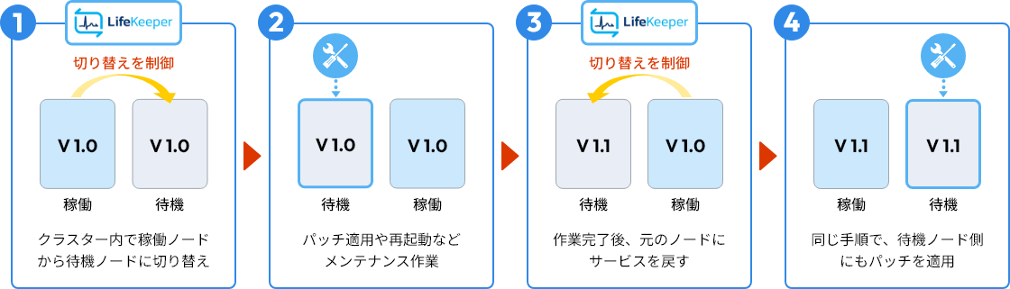 主にHAクラスター構成を活かし、稼働ノードでサービスを継続しながら、待機ノードで安全にパッチ適用・再起動を行うことができます。
